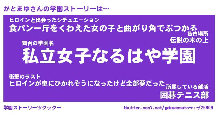 | ヒーロー風カッコイイあだ名 | 『スーパーカトマユ』『銀牙騎士カト』 |