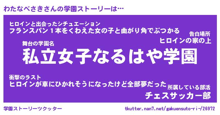| 女子向けラノベタイトル風あだ名 | 『誰かこのわたなべさきを説明してください! ~契約から始まるウェディング~』 |