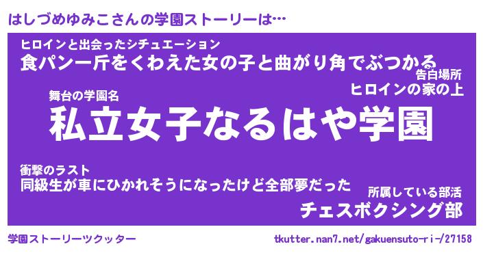| 女子向けラノベタイトル風あだ名 | 『誰かこのはしづめゆみこを説明してください! ~契約から始まるウェディング~』 |