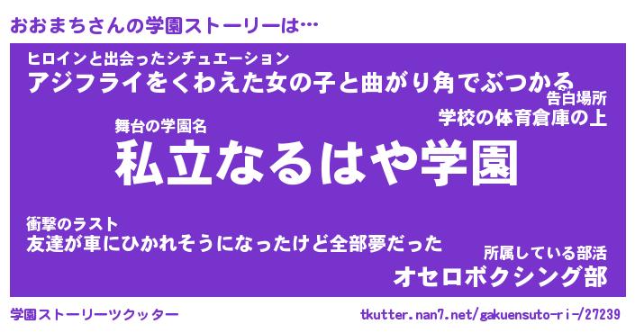 | 告白場所 先生の家の上 …「ふぃぎゅこ」 | 2月17日 06:24 |