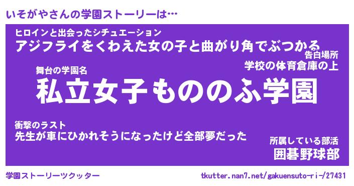 | ファンタジー風あだ名 | 『イソフェル』『エターナルイソガヤー』 |