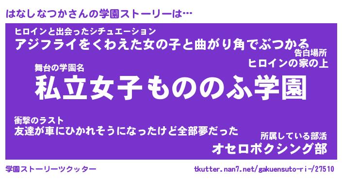 | 女子向けラノベタイトル風あだ名 | 『はなしなつか姫と円卓の騎士』 |