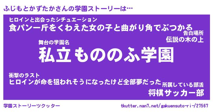 | 男性向けラノベタイトル風あだ名 | 『ふじもとかずたかの憂鬱』 |