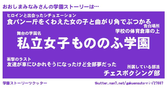 | 女子向けラノベタイトル風あだ名 | 『誰かこのおおしまみなみを説明してください! ~契約から始まるウェディング~』 |