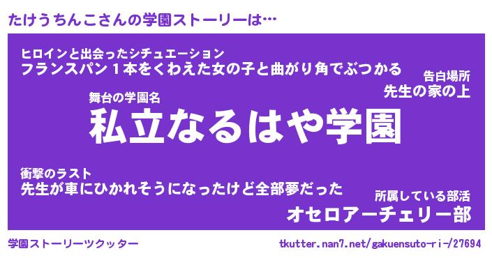 | 告白場所 先生の家の上 …「ふぃぎゅこ」 | 2月17日 06:24 |