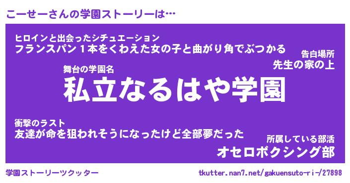 | 男性向けラノベタイトル風あだ名 | 『こーせーの憂鬱』 |