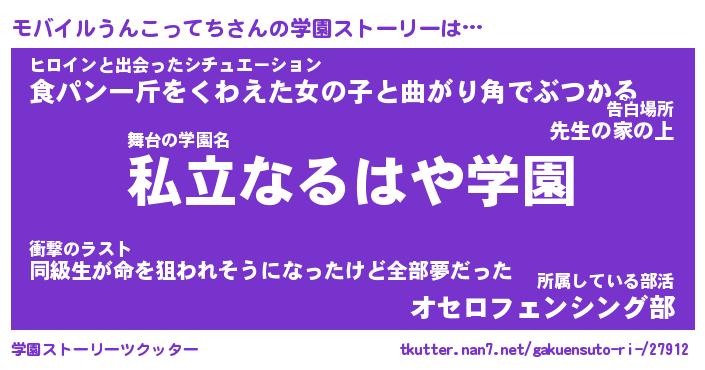 | 伝説のあだ名 | 『伝説のスナイパーモバイルうんこってち』 |