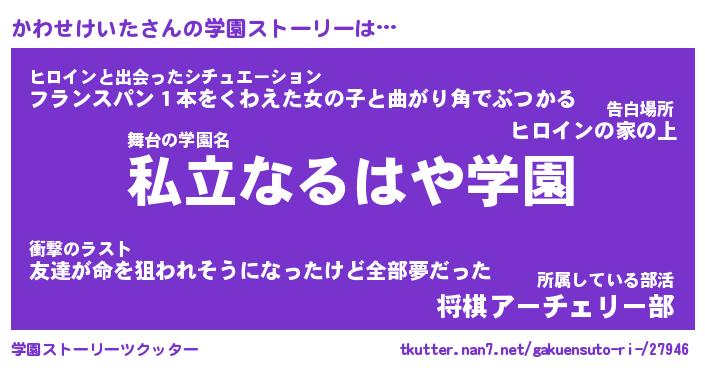 | 女子向けラノベタイトル風あだ名 | 『(仮)かわせけいたのやんごとなき事情』 |