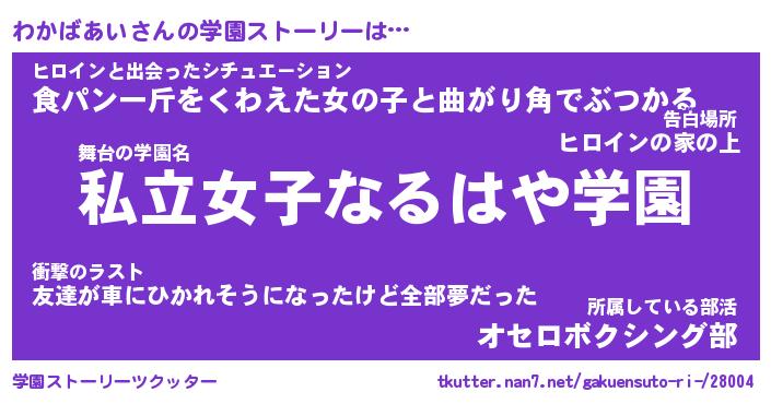 | ファンタジー風あだ名 | 『ワカフェル』『エターナルワカバアイー』 |
