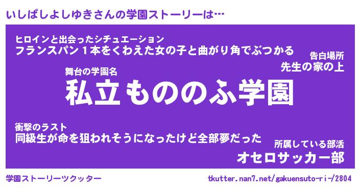 | 男性向けラノベタイトル風あだ名 | 『いしばしよしゆきの憂鬱』 |