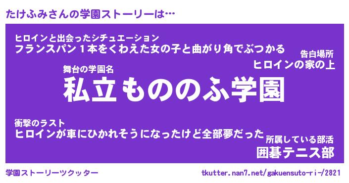 | ファンタジー風あだ名 | 『タケフェル』『エターナルタケフミー』 |