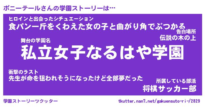 | 女子向けラノベタイトル風あだ名 | 『誰かこのポニーテールを説明してください! ~契約から始まるウェディング~』 |
