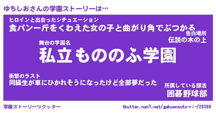 | 女子向けラノベタイトル風あだ名 | 『(仮)ゆちしおのやんごとなき事情』 |