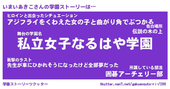 | ヒーロー風カッコイイあだ名 | 『スーパーイマイアキコ』『黄金騎士イマ』 |