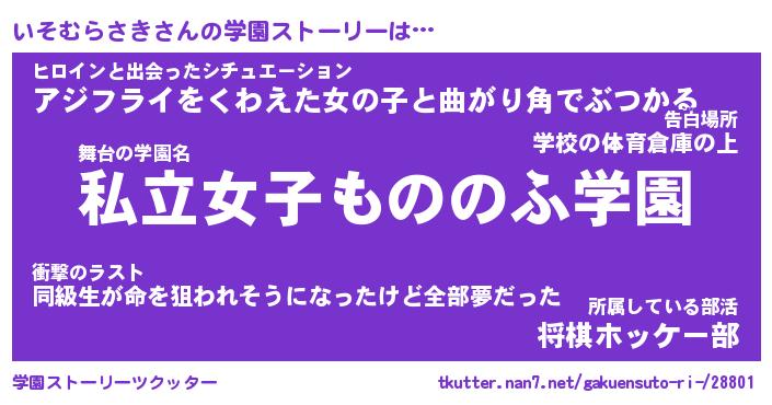 | ヒーロー風カッコイイあだ名 | 『スーパーイソムラサキ』『暗黒騎士イソ』 |