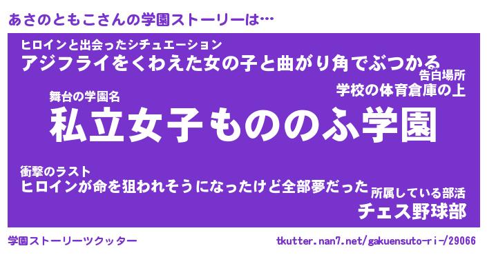 | 男性向けラノベタイトル風あだ名 | 『アサノトモコアートオンライン』 |