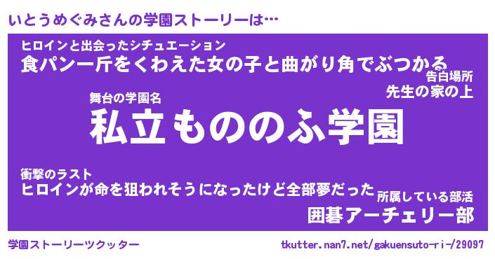 | 女子向けラノベタイトル風あだ名 | 『(仮)いとうめぐみのやんごとなき事情』 |