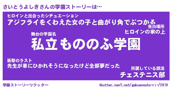 | 女子向けラノベタイトル風あだ名 | 『(仮)さいとうよしきのやんごとなき事情』 |