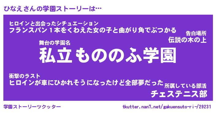 | 男性向けラノベタイトル風あだ名 | 『ひなえの憂鬱』 |