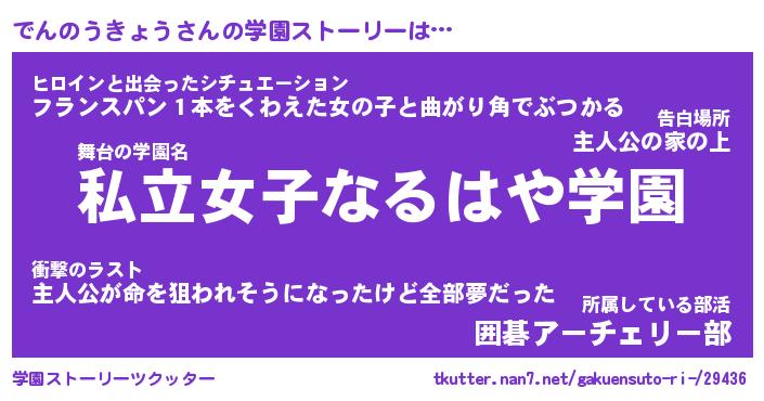 | ヘコむあだ名 | 『でんもー』『なまこ酢』『でんを』 |