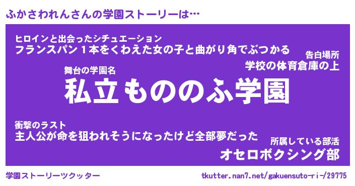 | 男性向けラノベタイトル風あだ名 | 『ふかさわれんの憂鬱』 |