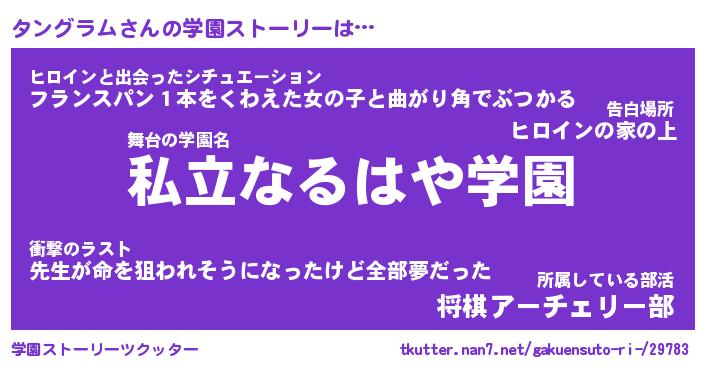 | 男性向けラノベタイトル風あだ名 | 『タングラムの憂鬱』 |