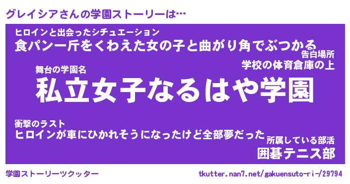 | ヒーロー風カッコイイあだ名 | 『スーパーグレイシア』『天弓騎士グレ』 |