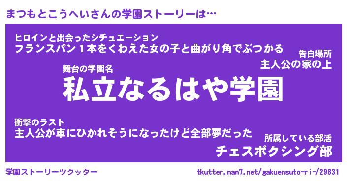 | 女子向けラノベタイトル風あだ名 | 『(仮)まつもとこうへいのやんごとなき事情』 |