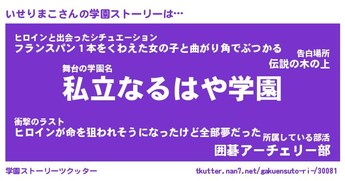 | 男性向けラノベタイトル風あだ名 | 『いせりまこの憂鬱』 |