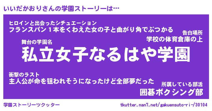 | 男性向けラノベタイトル風あだ名 | 『イイダカオリアートオンライン』 |