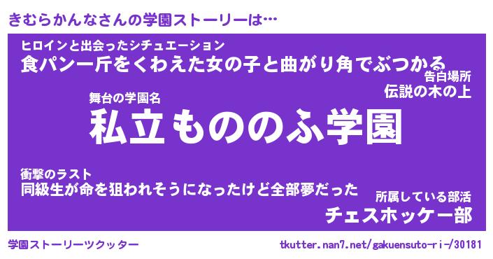 | 男性向けラノベタイトル風あだ名 | 『きむらかんなの憂鬱』 |