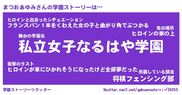 | 肩書あだ名 | 『まつおあゆみ社長令嬢』 |