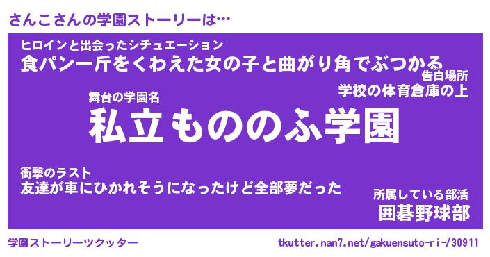 | 男性向けラノベタイトル風あだ名 | 『さんこの憂鬱』 |