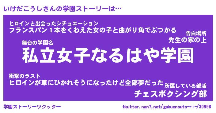 | ヘコむあだ名 | 『いけにゅー』『豆乳』『いけっぺ』 |