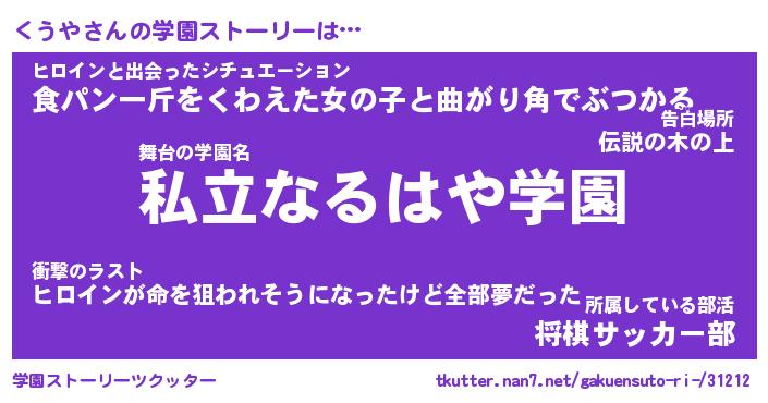 | 伝説のあだ名 | 『伝説のスナイパーくうや』 |