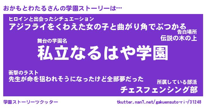 | 女子向けラノベタイトル風あだ名 | 『(仮)おかもとわたるのやんごとなき事情』 |