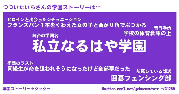 | ヒーロー風カッコイイあだ名 | 『スーパーツツイタイチ』『暗黒騎士ツツ』 |