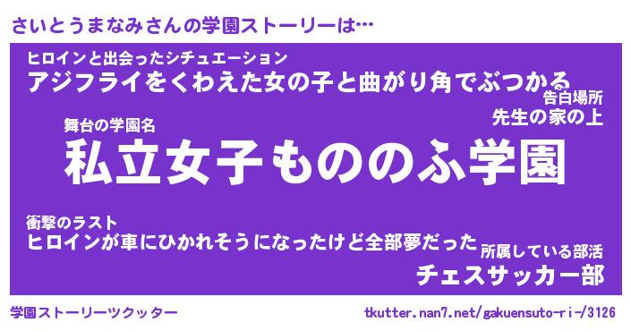 | 男性向けラノベタイトル風あだ名 | 『サイトウマナミアートオンライン』 |