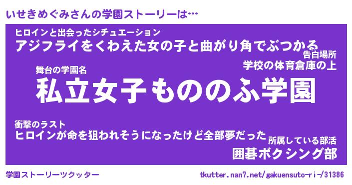 | 女子向けラノベタイトル風あだ名 | 『いせきめぐみ姫と円卓の騎士』 |