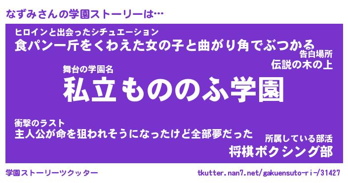 | 男性向けラノベタイトル風あだ名 | 『なずみの憂鬱』 |