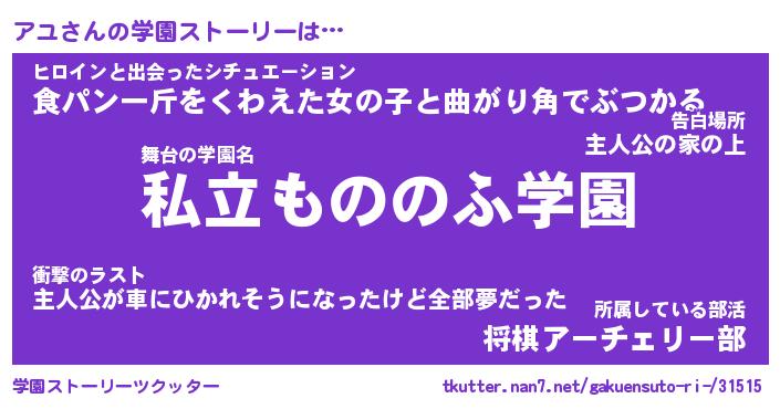 | 男性向けラノベタイトル風あだ名 | 『アユの憂鬱』 |