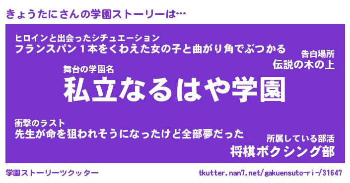 | 女子向けラノベタイトル風あだ名 | 『(仮)きょうたにのやんごとなき事情』 |
