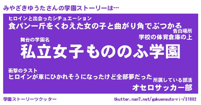| 女子向けラノベタイトル風あだ名 | 『誰かこのみやざきゆうたを説明してください! ~契約から始まるウェディング~』 |