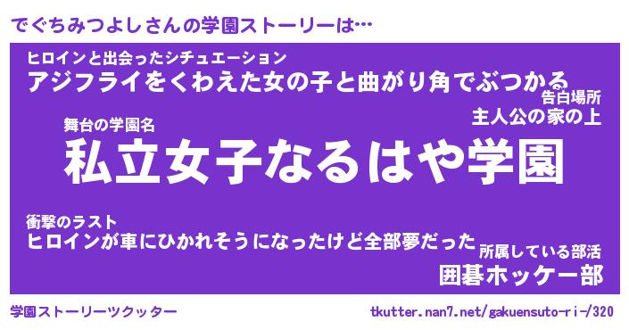| 女子向けラノベタイトル風あだ名 | 『でぐちみつよし姫と円卓の騎士』 |
