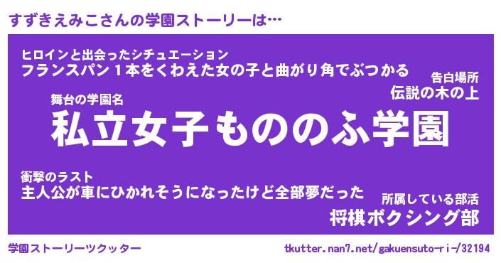 | 女子向けラノベタイトル風あだ名 | 『すずきえみこ姫と円卓の騎士』 |