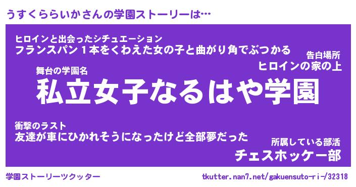 | 女子向けラノベタイトル風あだ名 | 『うすくららいか姫と円卓の騎士』 |