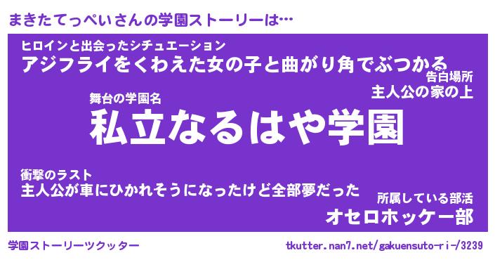 | 女子向けラノベタイトル風あだ名 | 『(仮)まきたてっぺいのやんごとなき事情』 |