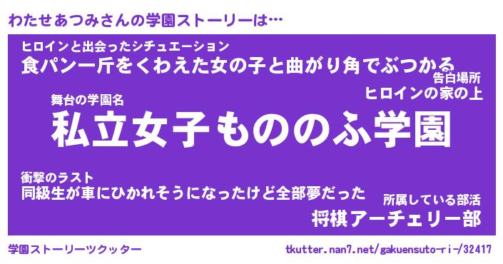 | 肩書あだ名 | 『わたせあつみ社長』『わたせあつみ担任』 |