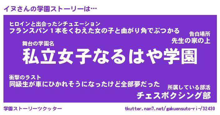 | ファンタジー風あだ名 | 『イヌフェル』『エターナルイヌー』 |