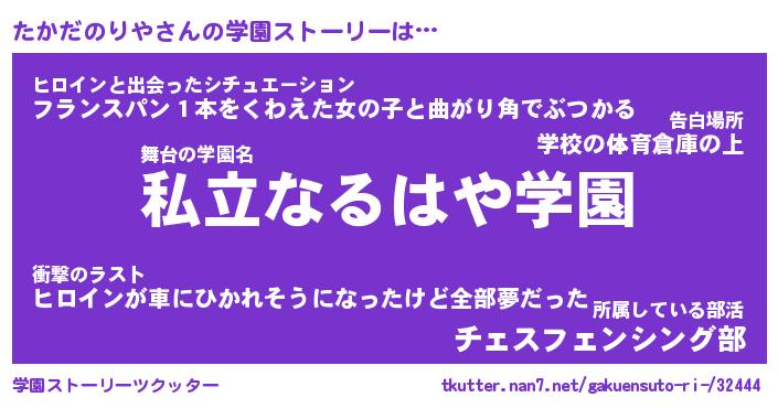 | 男性向けラノベタイトル風あだ名 | 『たかだのりやの憂鬱』 |